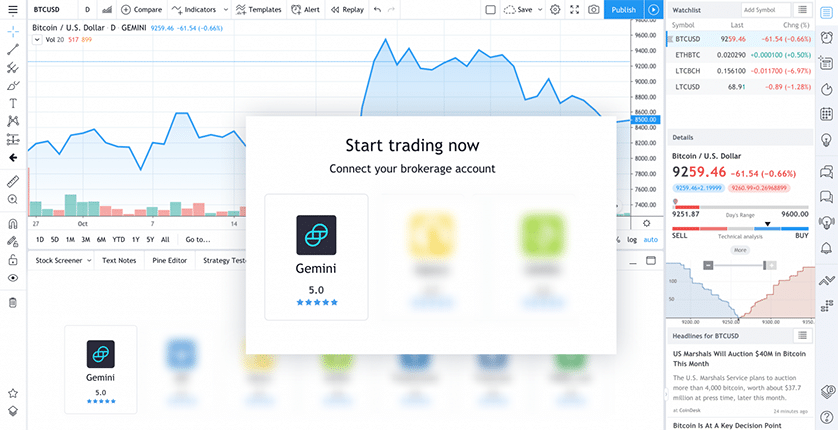 ส่วนหนึ่งของความร่วมมือ ตอนนี้ Gemini ได้ลิสต์ใน Trading Panel ของ TradingView แล้ว และแสดงในส่วนของ Brokerage Section อีกด้วย