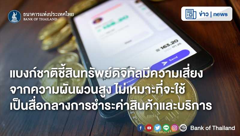 “ธปท. จึงยังคงไม่สนับสนุนการนำสินทรัพย์ดิจิทัลมาใช้เป็นสื่อกลางการชำระค่าสินค้าและบริการ และเห็นว่าสินทรัพยฺ์ดิจิทัลบางประเภทเป็นสินทรัพย์เพื่อการลงทุนที่ผู้ลงทุนต้องเข้าใจความเสี่ยง ซึ่งเป็นมุมมองที่สอดคล้องกับองค์กรระหว่างประเทศและหน่วยงานกำกับหลายประเทศ อาทิ กองทุนการเงินระหว่างประเทศ (IMF) และธนาคารเพื่อการชำระหนี้ระหว่างประเทศ (BIS) อังกฤษ สหภาพยุโรป เกาหลีใต้ และมาเลเซีย” ธปท. แจ้งในแถลงการณ์