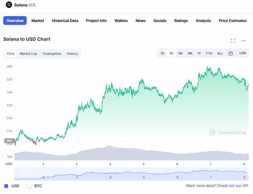 Solana (SOL) ทำสถิติสูงสุดเป็นประวัติการณ์ (ATH) อีกครั้ง ทะลุ $260 ดอลลาร์สหรัฐ