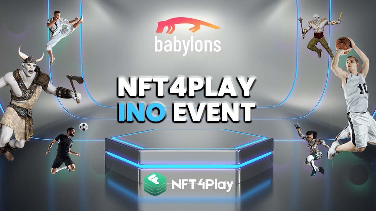NFT4Play เป็นแพลตฟอร์มเกม Play2Earn ที่ให้ผู้เล่นแข่งขันและเดิมพันกันเอง เกมแรกของ NFT4Play จะเป็นฟุตบอล เพื่อเป็นการเฉลิมฉลองความร่วมมือนี้ Babylons จะจัดงาน INO Event กับ NFT4Play ในวันที่ 6 มกราคม เวลา 12.00 UTC หวังว่าจะได้พบคุณที่นั่น