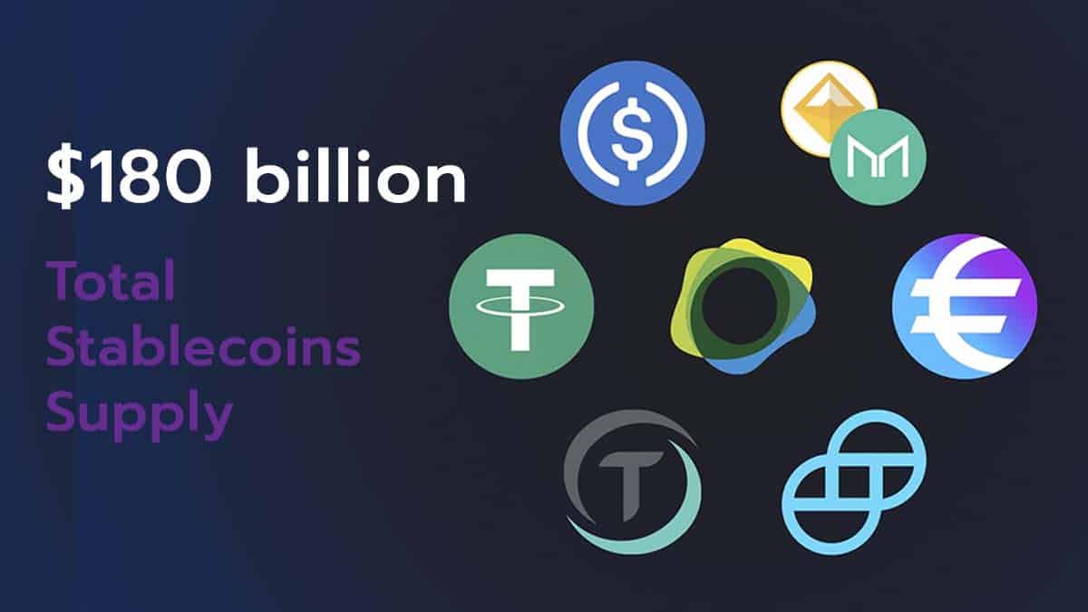 แม้ว่าตลาดคริปโตร่วงเมื่อเร็ว ๆ นี้ แต่อุปทานเหรียญ stablecoin นั้นสูงถึง $180 พันล้านดอลลาร์สหรัฐ เพิ่มขึ้น $9.5 พันล้านดอลลาร์สหรัฐ ในช่วง 30 วันที่ผ่านมา
