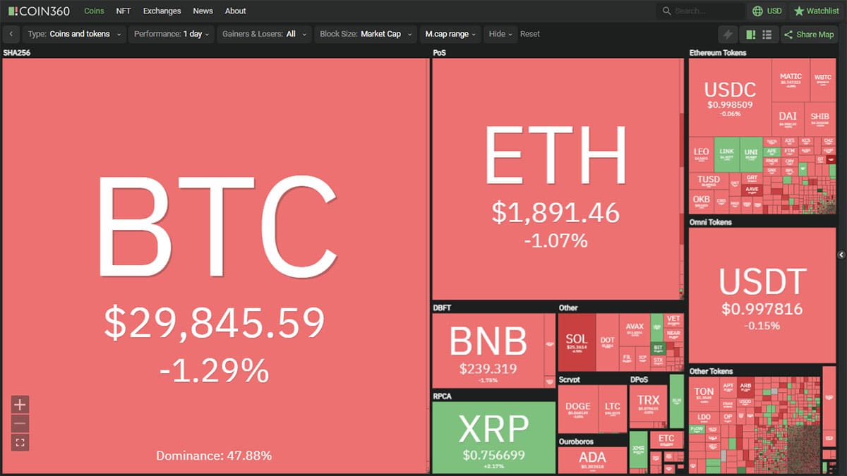 ราคา bitcoin (BTC) อยู่ที่ประมาณ $29,780 ไม่สามารถยืนเหนือระดับต่ำสุดในรอบหนึ่งเดือนได้ เนื่องจากเมื่อเช้าวันอังคาร มีข้อมูลเศรฐกิจยืนยันว่าสหรัฐฯ ยังคงเติบโต และเทรดเดอร์ต่างเตรียมตัวในเรื่องการเพิ่มอัตราดอกเบี้ยจากธนาคารกลางฯ ที่ชัดเจนมีโอกาสเกือบ 100% ในสัปดาห์หน้า